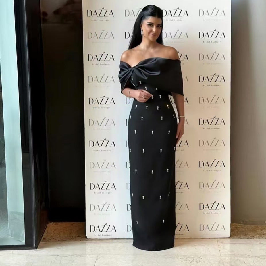 This off-shoulder masterpiece features a sculpted neckline, crystal detailing, and a flawless body-contouring silhouette that enhances your natural curves. Crafted for gala nights, weddings, luxury birthdays, and exclusive events.