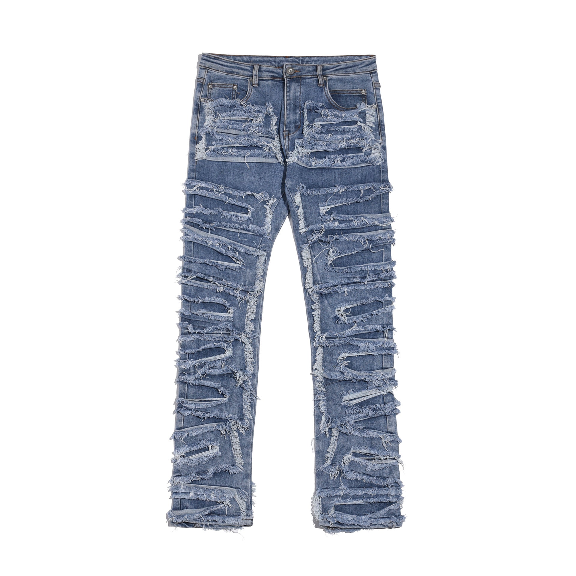 Men’s Premium Ripped Patch Denim Jeans – Streetwear Fit with Free Alterations
