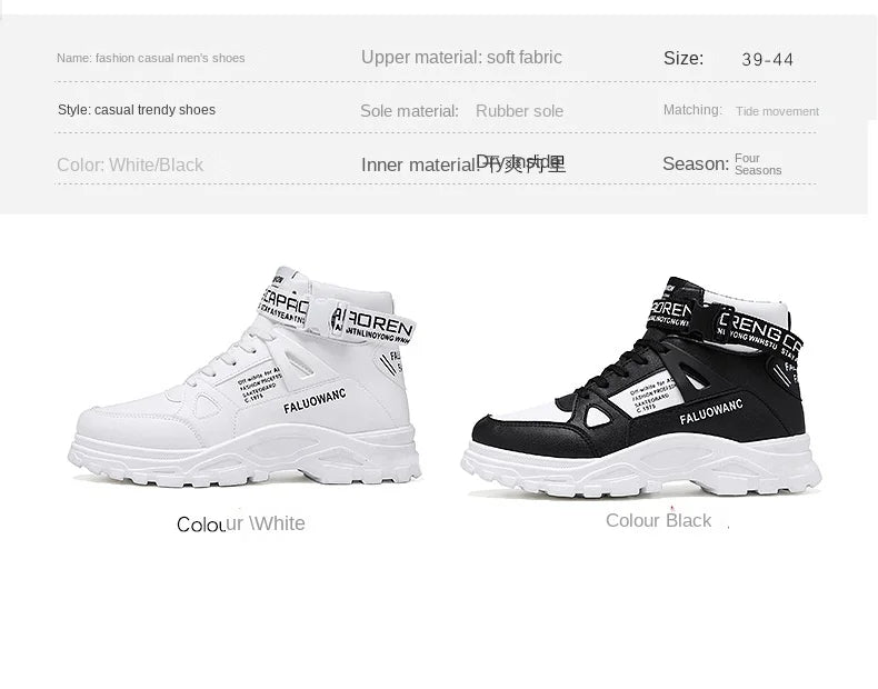 Elevate your streetwear game with our versatile High-Top Chunky Boots for Men. Designed for bold fashion lovers, these boots offer unmatched comfort, durability, and standout style. Their rugged sole and modern silhouette make them perfect for fall and winter outfits. Pair them with any look for a strong presence and everyday comfort.