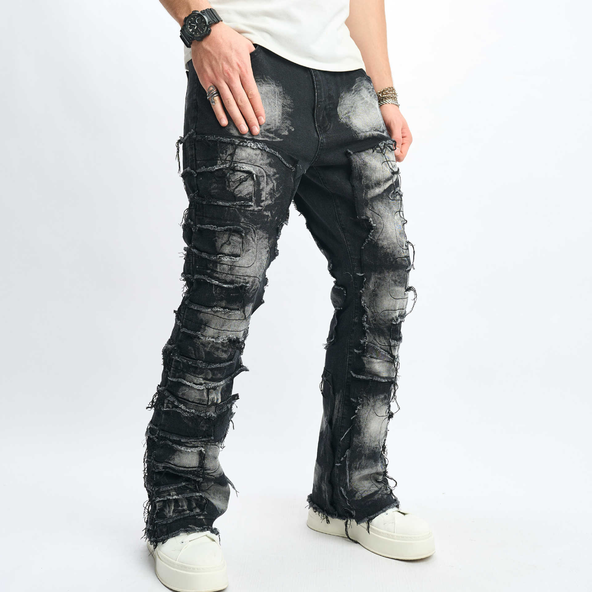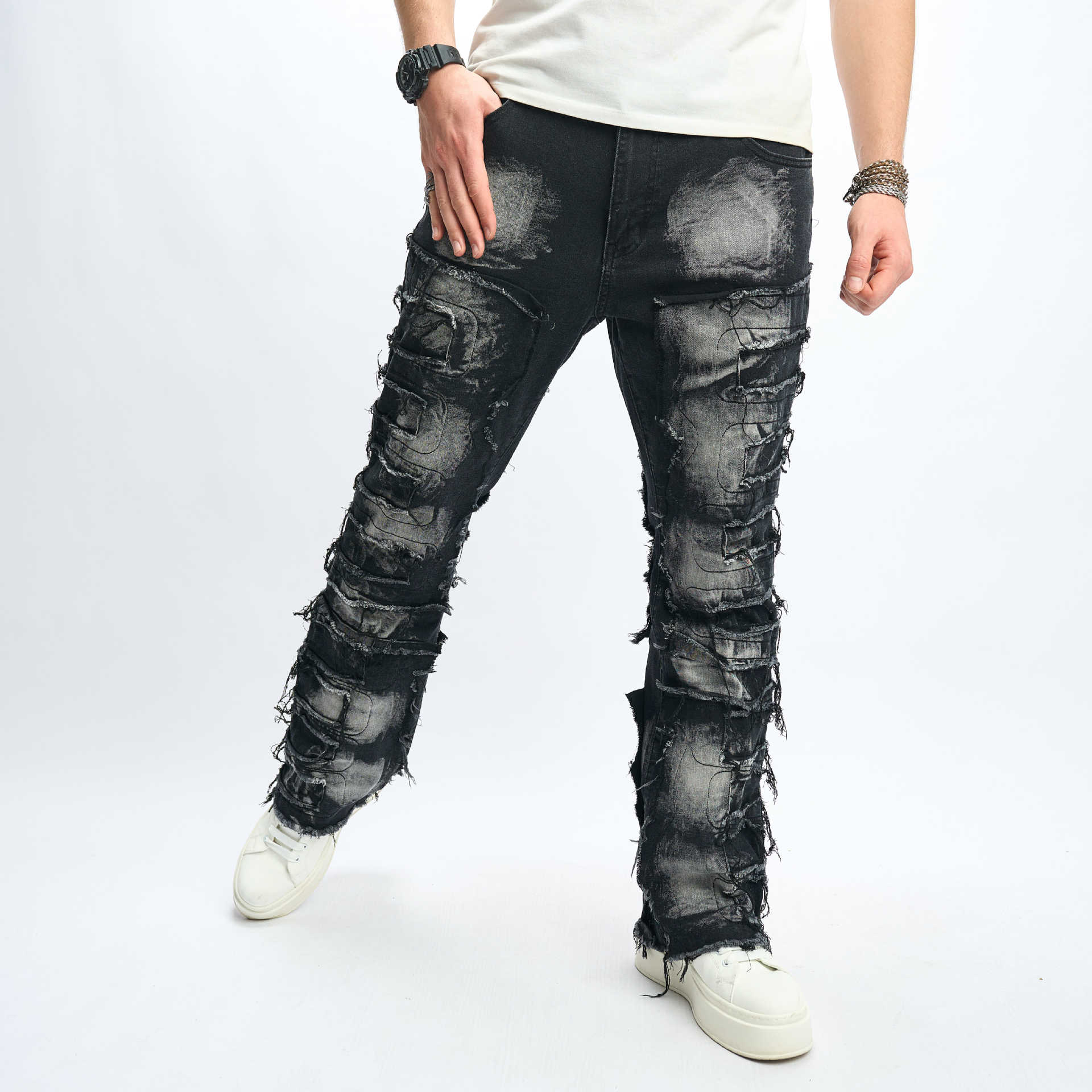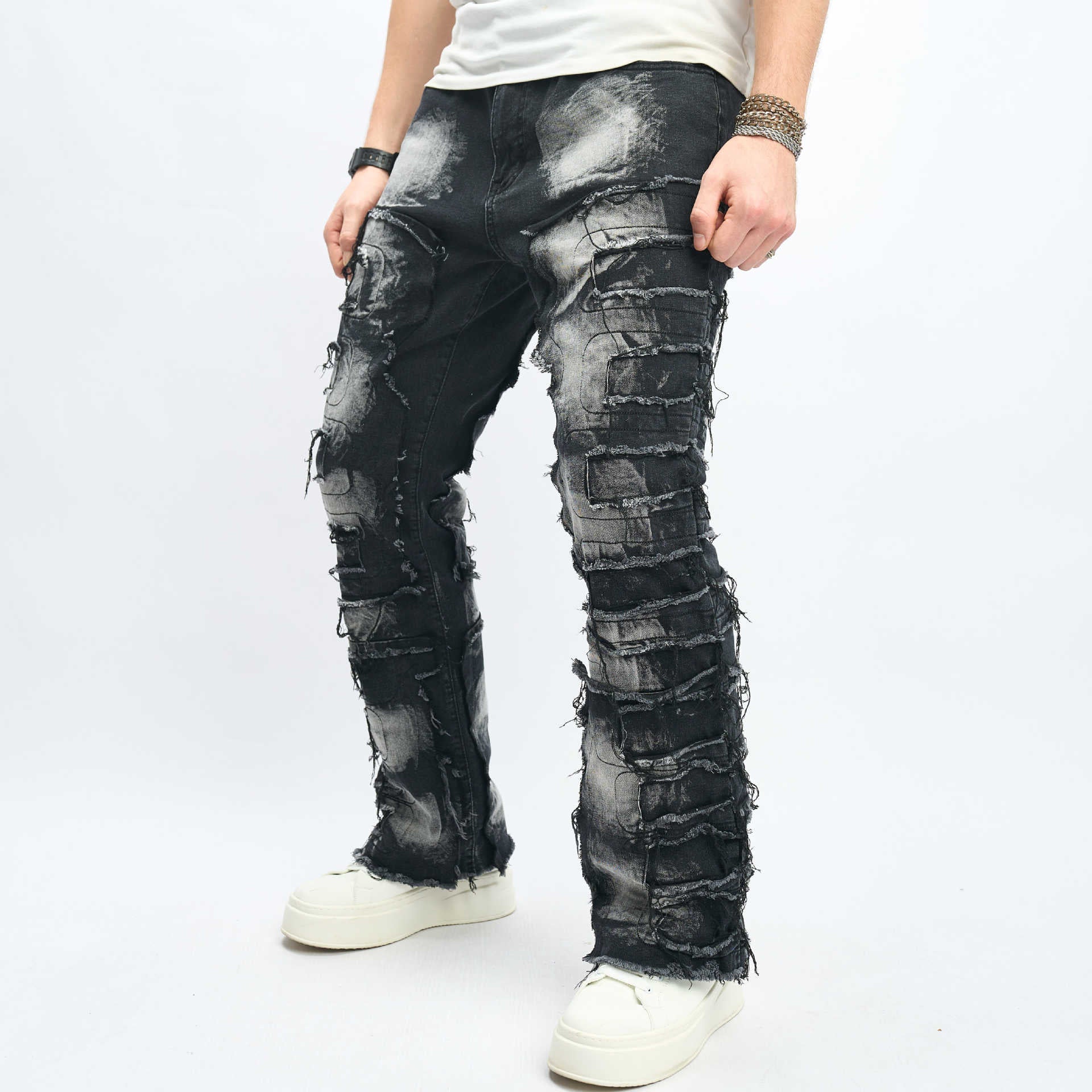 Men’s Stacked Distressed Streetwear Jeans – Free Alterations