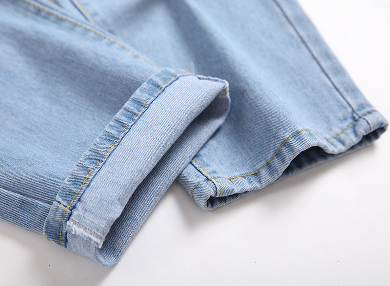 Jeans Men'S Straight Plus Size Denim Trousers Light Blue